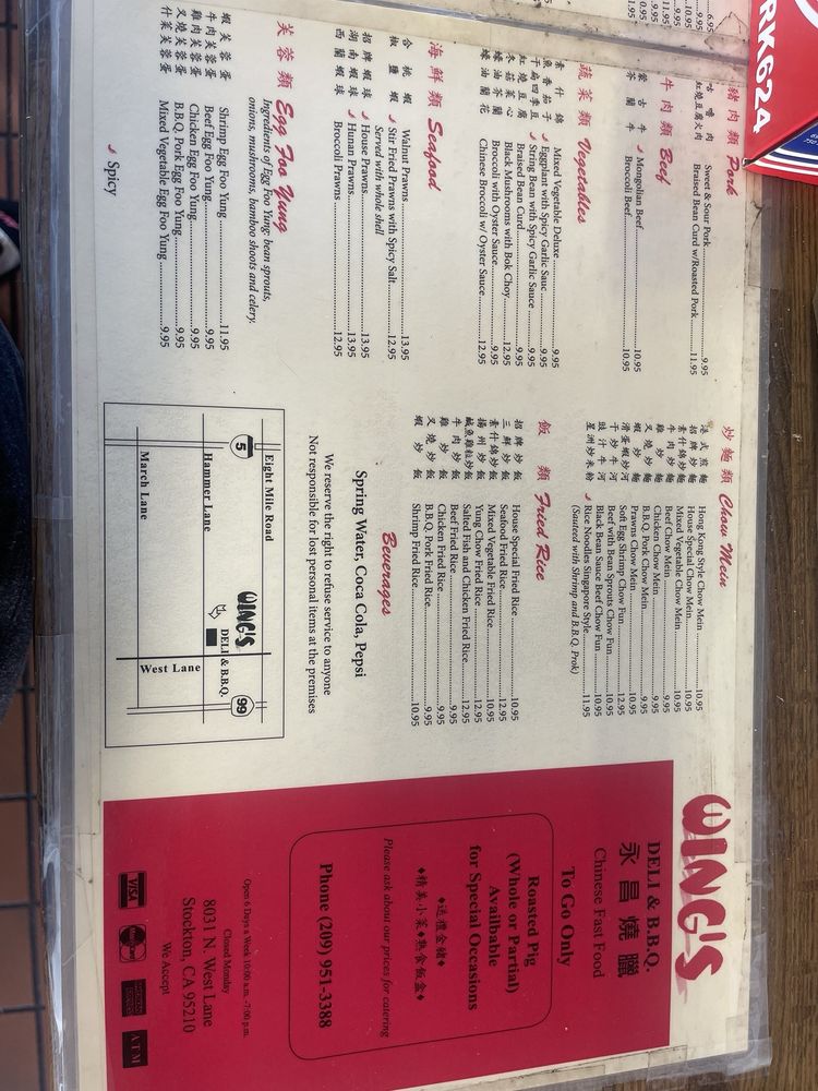 Welcome to Wing's Deli, a true gem nestled in Stockton, CA, specializing in authentic Chinese cuisine. Located at 8031 West Ln, this eatery has garnered rave reviews for its commitment to freshness and flavor. Guests like Luis Zamudio rave about the delicious food, highlighting the crunchiness of the vegetables and the warmth of the friendly staff. Signature dishes such as the roast duck are a must-try—juicy, perfectly cooked, and often selling out quickly as noted by Da Iloco Adobo.